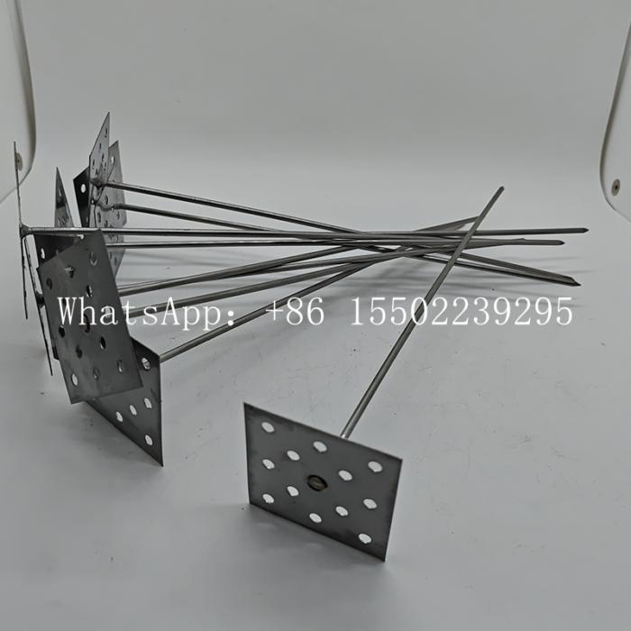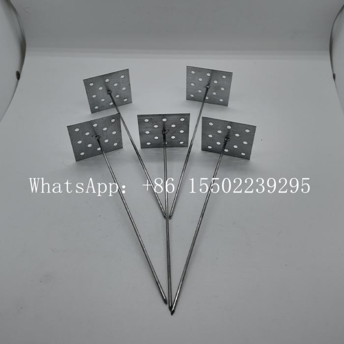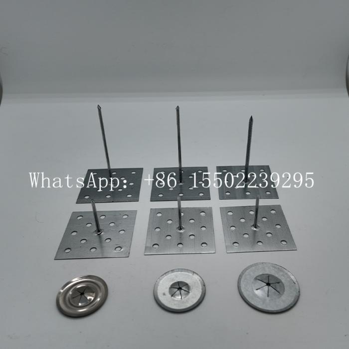 The unique design of our perforated base insulation nails features a precision-stamped 2" x 2" metal base with a series of small holes. This perforated structure is the key to its superior holding power. When used with professional-grade insulation adhesives (such as lacing anchor glue), the adhesive is forced through the perforations. Once cured, this creates a "rivet-like" mechanical bond that locks the base into place. This dual-action bonding (chemical and mechanical) ensures that the insulation system remains stable even under extreme temperature fluctuations or high-vibration conditions common in industrial environments.